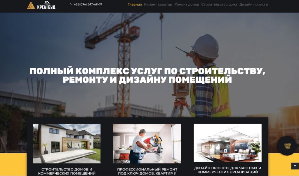 Создание сайта услуг по строительству, ремонту и дизайну помещений в Киеве
