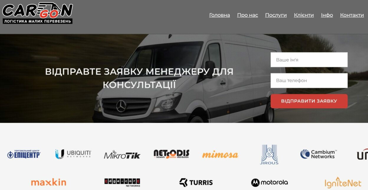Создание корпоративного лендинга для грузовых перевозок. Также, запуск контекстной рекламы для привлечения клиентов на сайт.